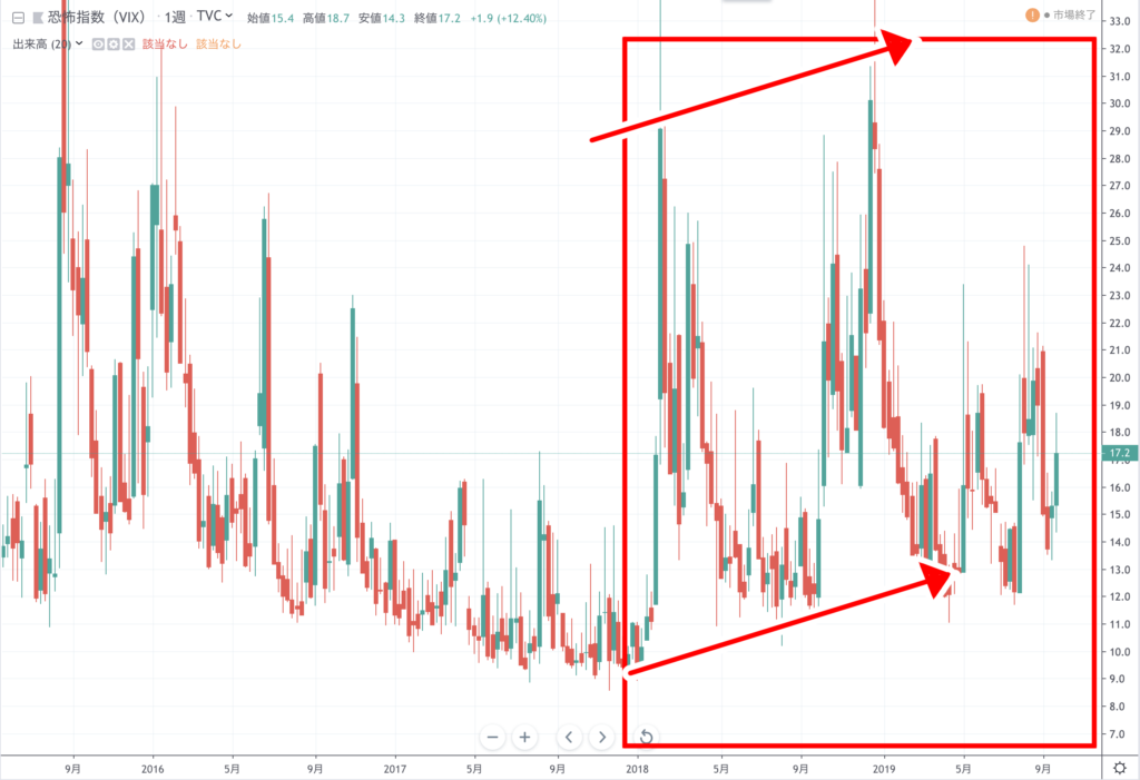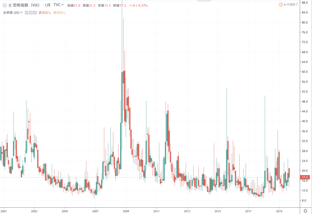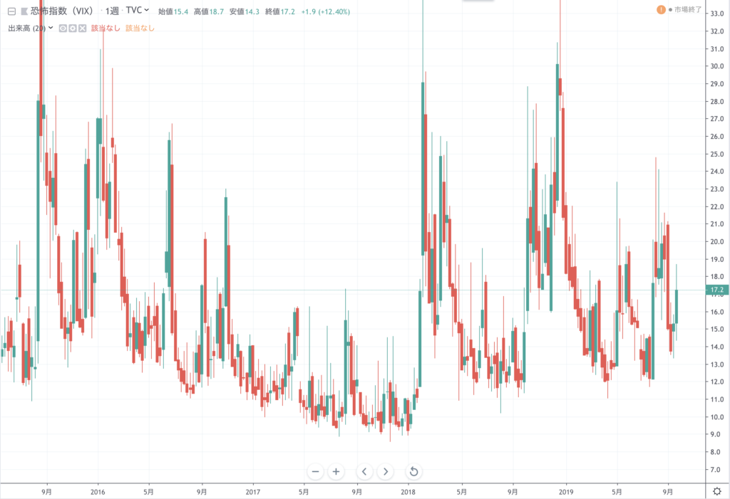 恐怖指数はVIXとも呼びます。上昇する程、株価暴落の可能性が高まると覚えてもらえれば大丈夫です!
