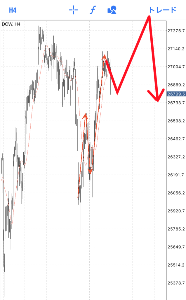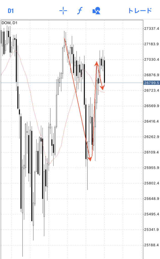 実はアメリカ株ダウでは2波目→3波目を形成していると考えています。