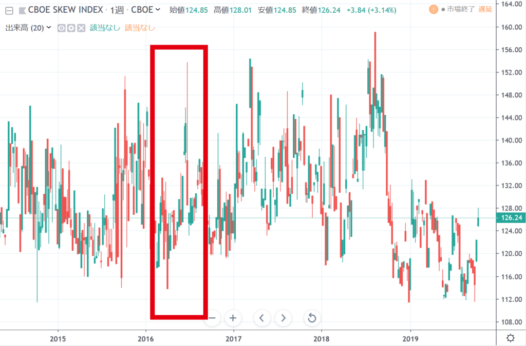 2016年のイギリス国民投票の時、スキュー指数が上昇してから起こりましたね!