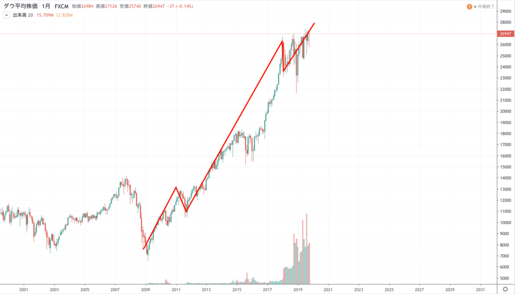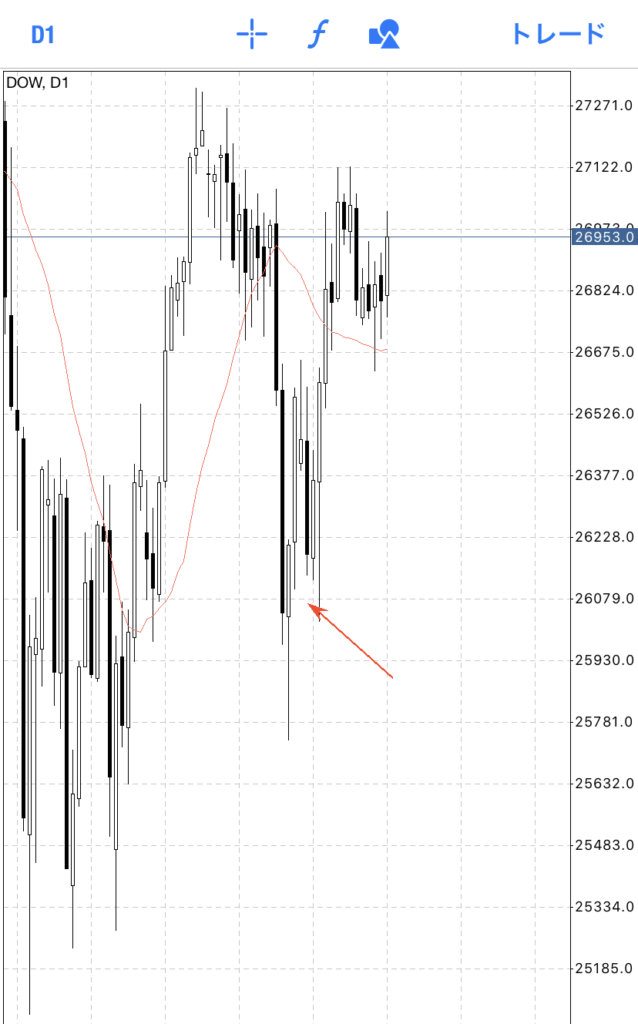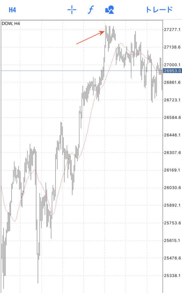 なので、アメリカ株ダウは少し落ちて利食いするのではなく、もっとトレンドを成長させて利益を伸ばそうと考えてたわけです。