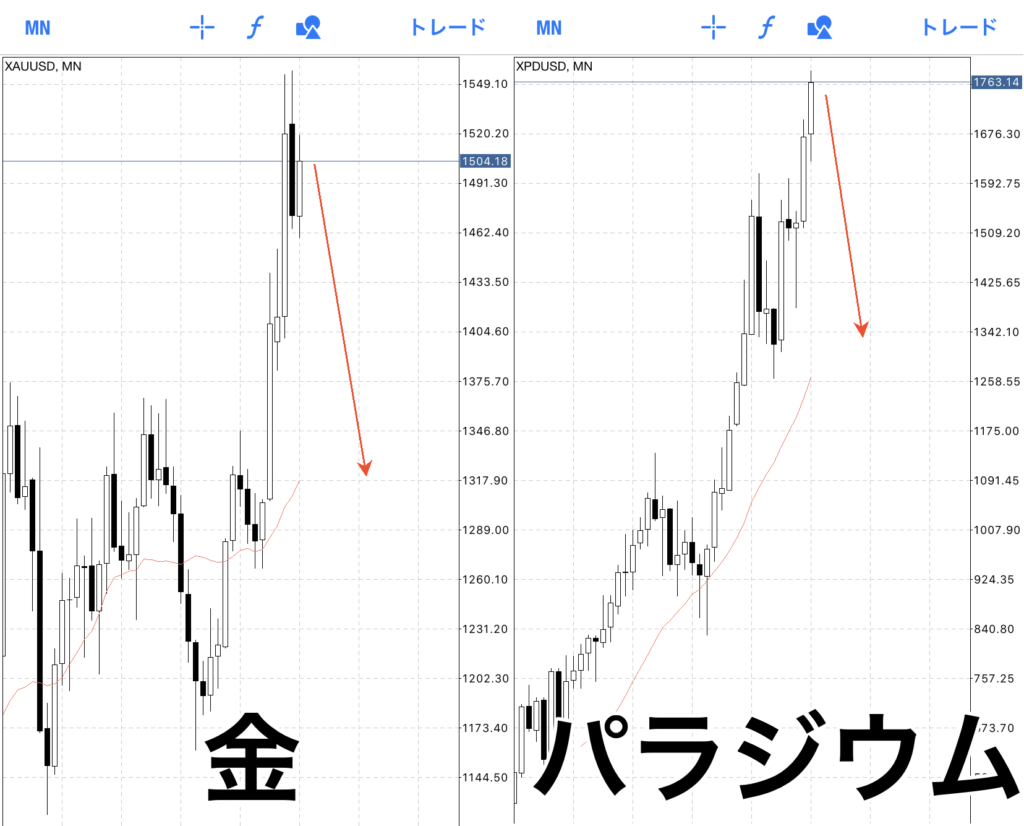 正解です!株価が上がれば金が落ち、パラジウムも落ちる・・・そのような考えから一旦貴金属にシフトしたというわけです。