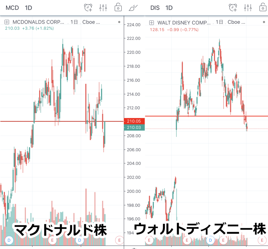 さて、今回お見せするのはマクドナルド株とウォルトディズニー株になります。