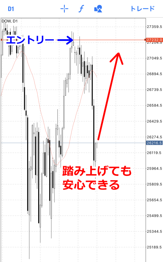 もしここから踏み上げられると、含み損になるリスクが高いからです。