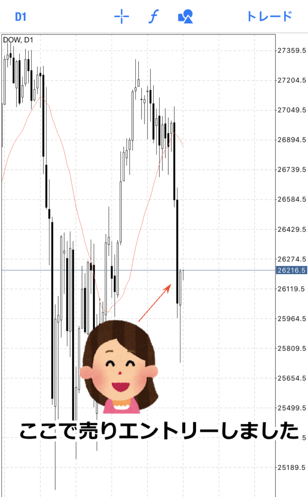 実は私、アメリカ株ダウが一気に落ちてきたので売りエントリーしました!