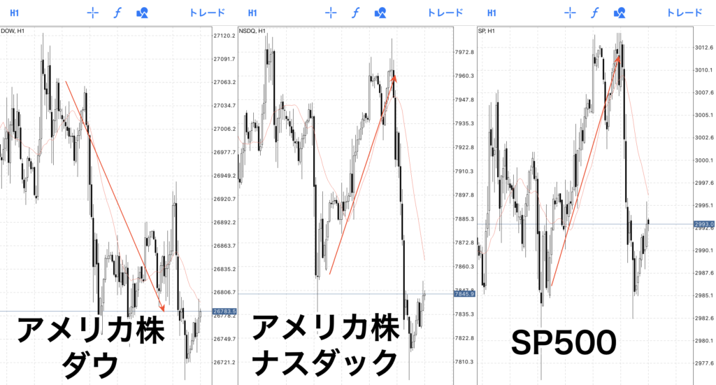 実は先日、アメリカ株ダウは下落してアメリカ株ナスダックとSP500は上昇していました。