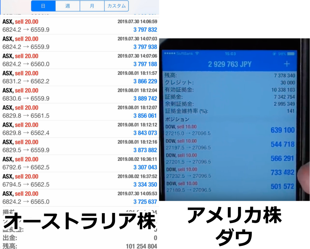 実は前回のオーストラリア株に比べたら、今回のアメリカ株ダウはロットが小さいんです。