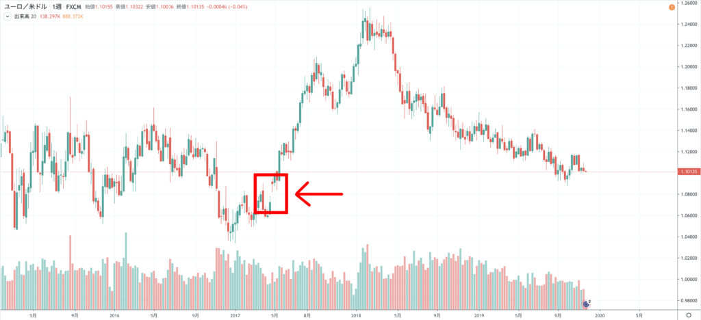 こちらがユーロドルのチャートになりますが、何か違和感を感じませんか?
