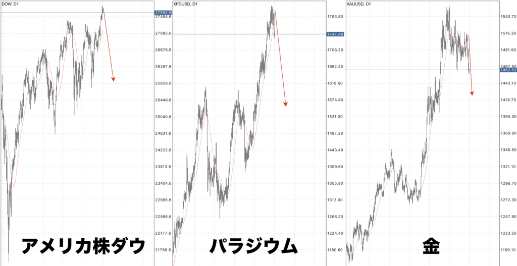 なので、株価とパラジウムの暴落は同じタイミングで起こるのでは?と考えました。