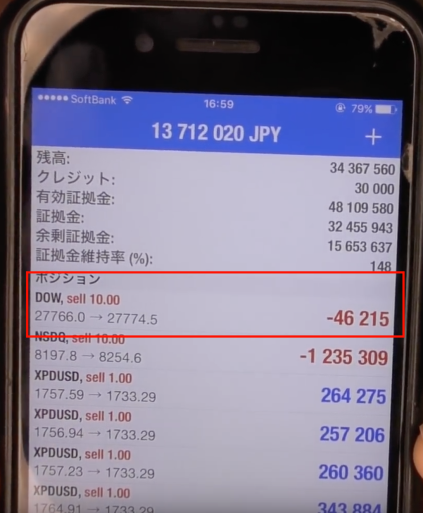 なので、アメリカ株ダウを10ロット売りエントリーしました!