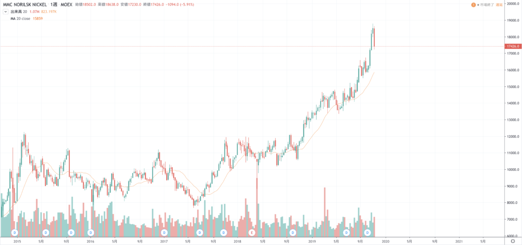 更にロシアの企業である、パラジウムを採掘している企業の株価も下落しています。