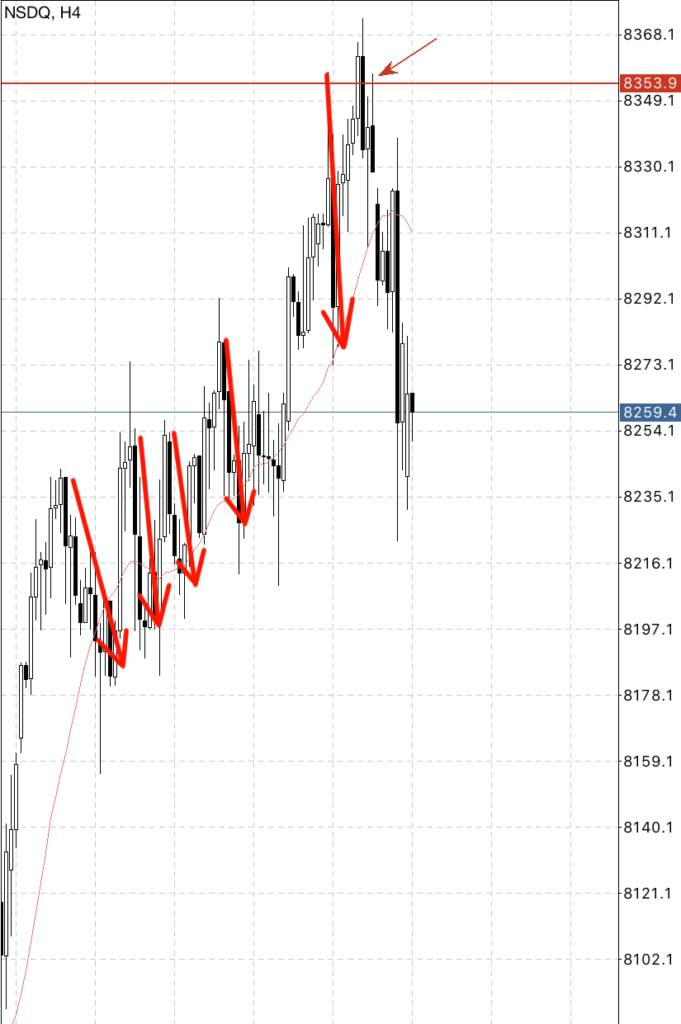 つまり、相場が過熱し上昇トレンドが続く中で