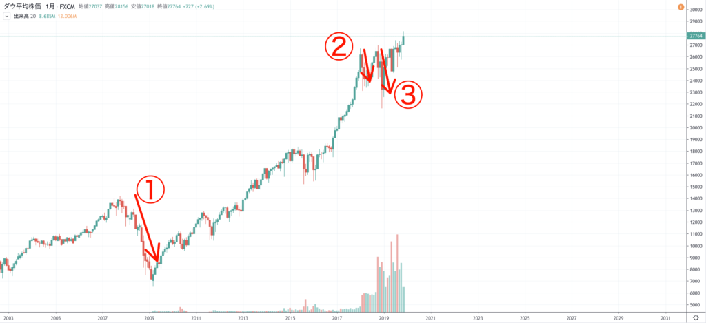 2008年 リーマンショック で下落