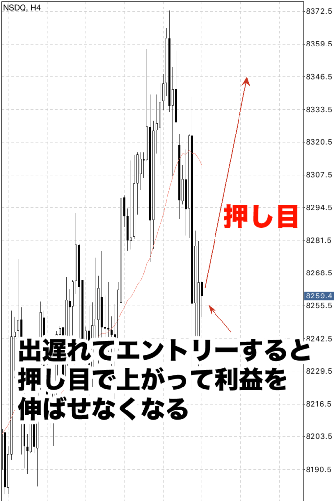 もし落ちてきたとき、出遅れてしまうと押し目で上昇していまう可能性も出てきます。
