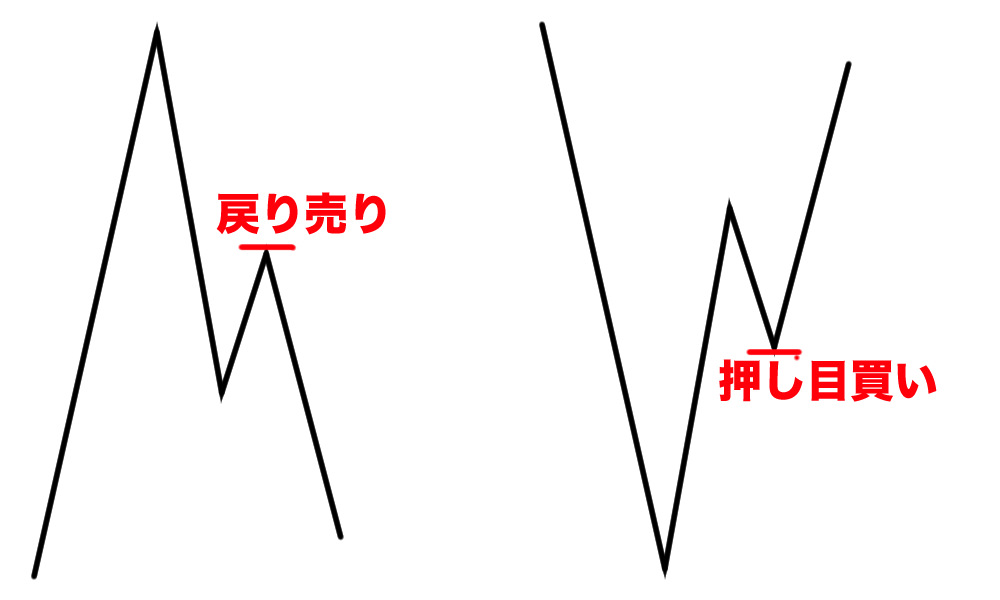 そうですね。上下反転したパターンは押し目買いと言いますが、実は戻り売りや押し目買いはかなりリスクも大きくなります。