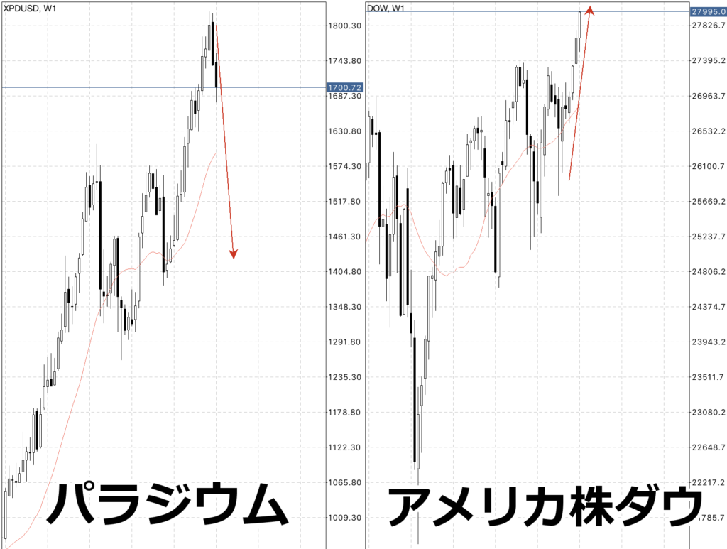 パラジウムが落ちてアメリカ株が爆上げしたとしましょう。
