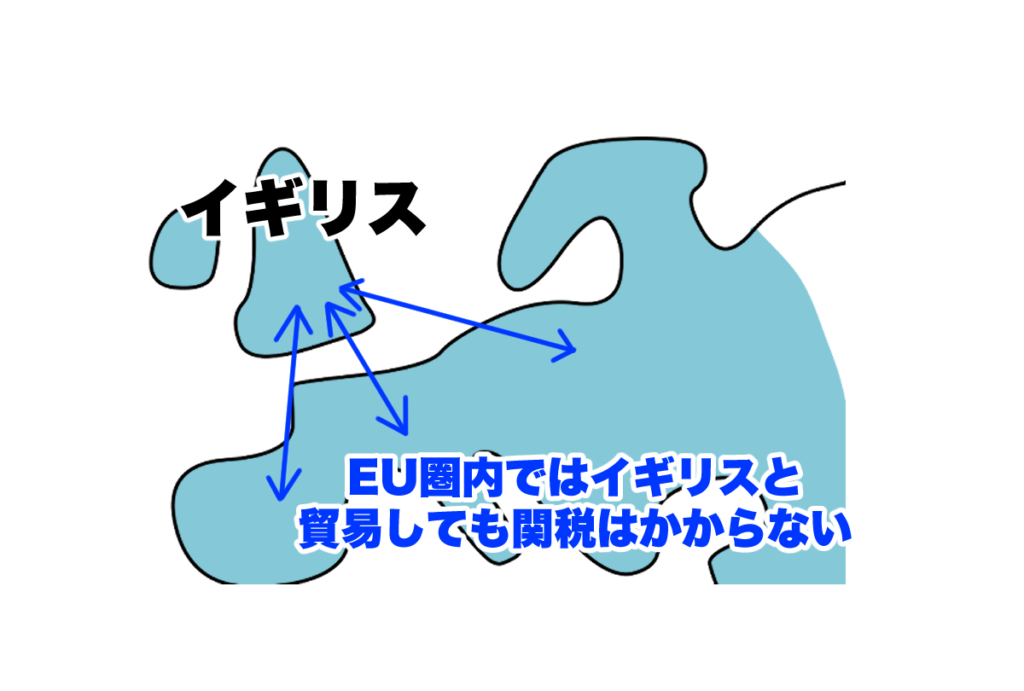 さて、イギリスは今現在はEU加盟国なので、例えばイギリス→フランスやイギリス→ドイツと貿易しても関税はかかりません。