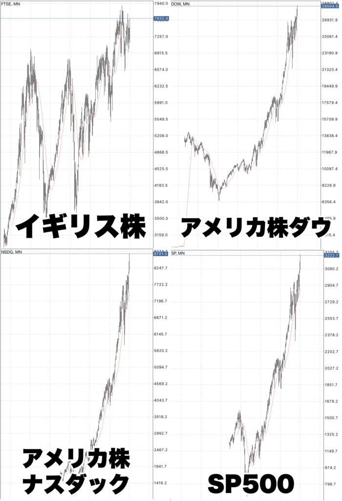 世界の株価は全体的に買われすぎている状況を見ると、まだ長期的にバブルになることは想定しにくいからです。