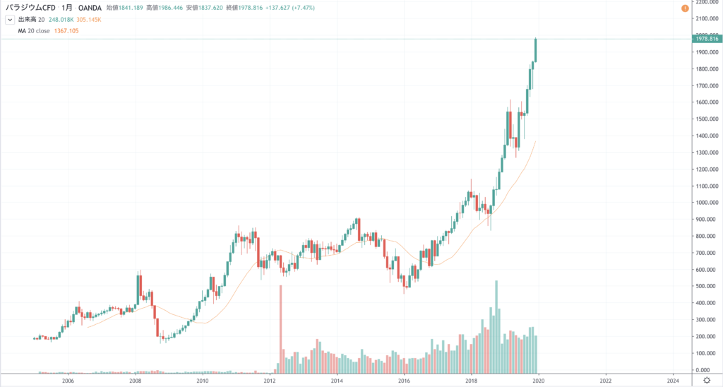 よく金を狙ってると思われがちですが、僕はマイナーな貴金属のパラジウムを狙っています。