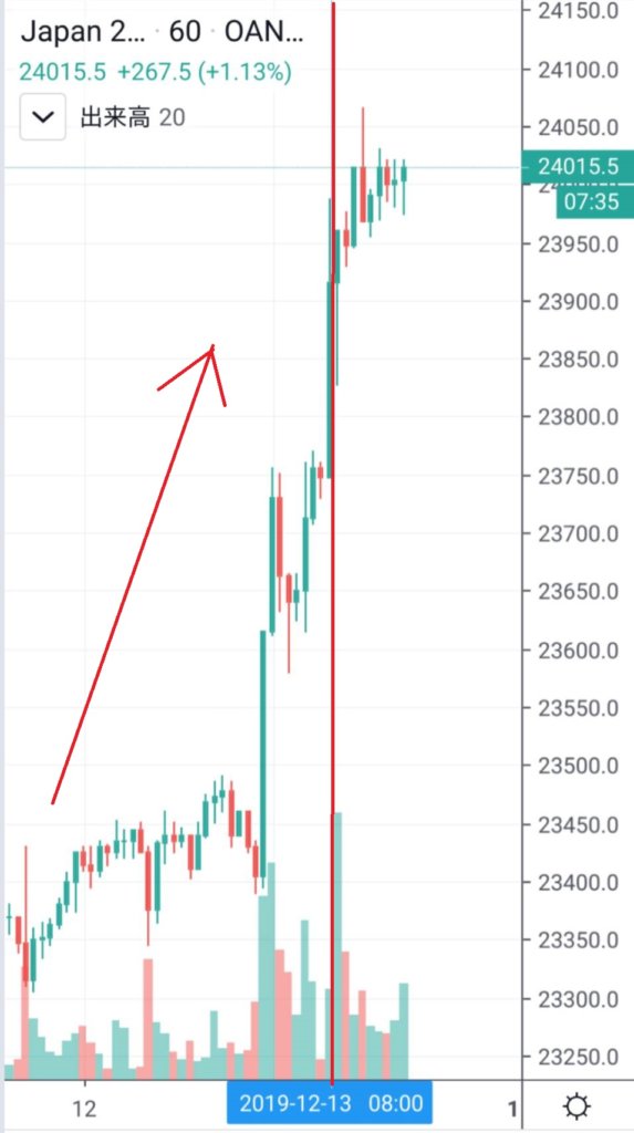 なので、日経平均株価は上昇トレンドとなっていましたが指標結果が好材料となってさらに上昇していますね!