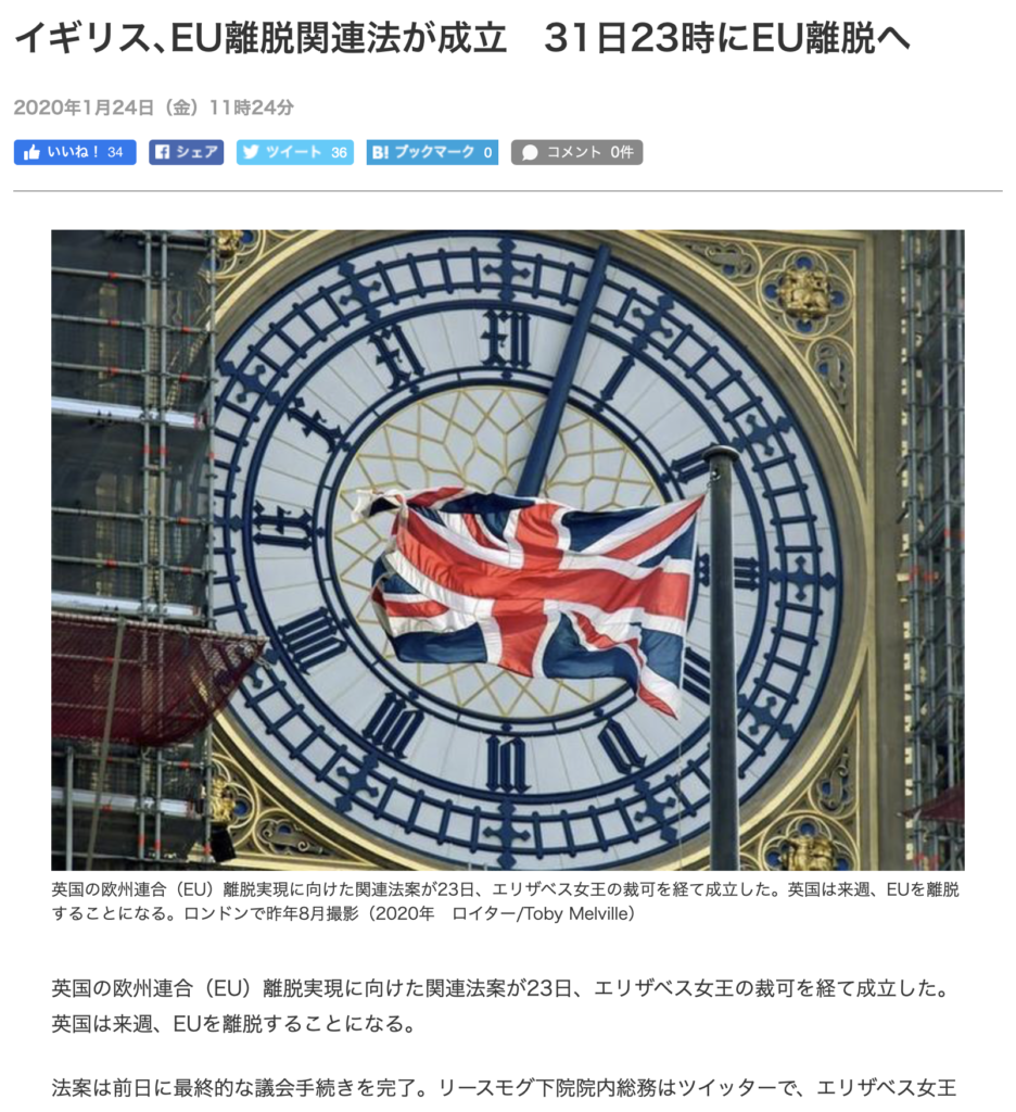そしてEU議会で承認が出れば、1月31日(日本時間では2月1日)に正式にEU離脱となります。