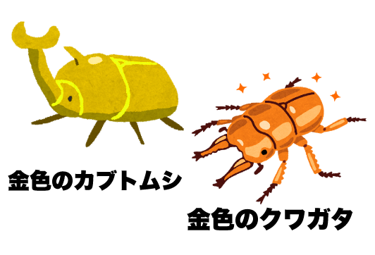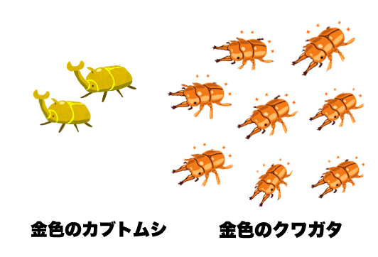 この時、金色のカブトムシとクワガタは、どちらの方が珍しいでしょうか?