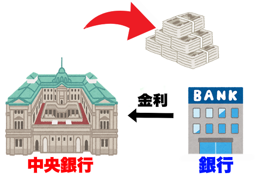 中央銀行とは、簡単にいうと銀行の銀行だとお考えください。
