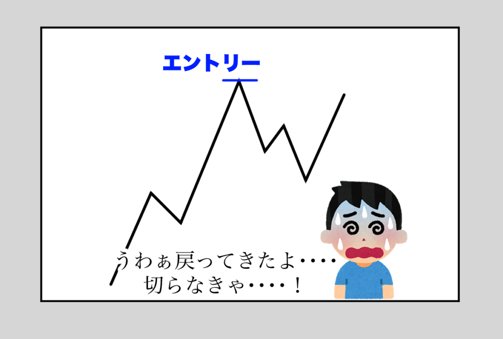 初心者の場合、最初は少し戻ってくると「うわぁやばい!切らなきゃ!」とチャートに振り回される傾向があります。