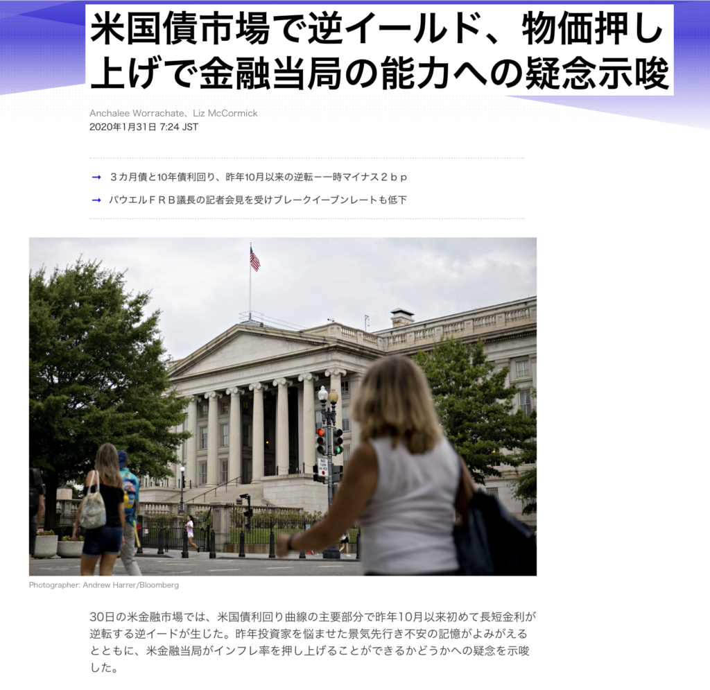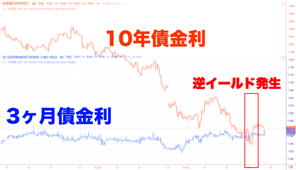 1月30日に10月以来、短期金利が長期金利を上回る「逆イールド」が発生しました。