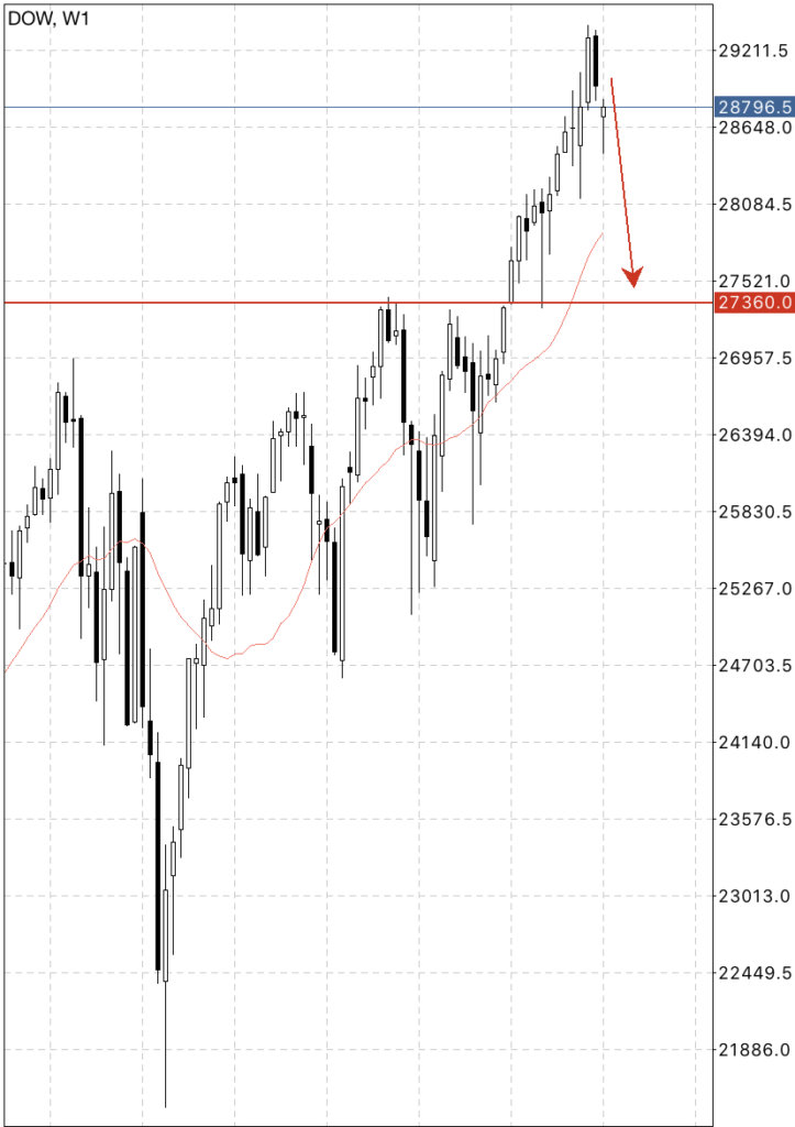 じゃあ、アメリカ株ダウが現在28800ドルとして、5%下落で27360ドルじゃないですか!
