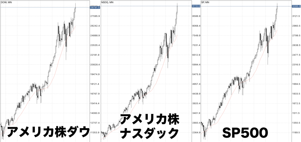 イメージとしては、アメリカ株が移動平均線から離れたら点灯しやすい傾向があります。