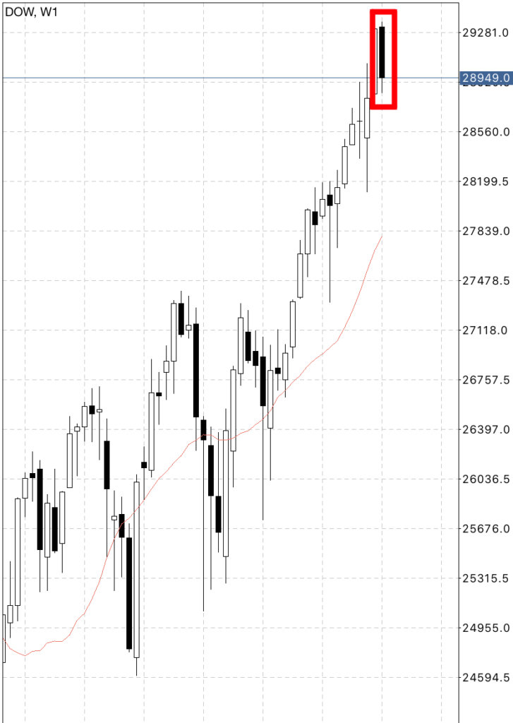 さて、コロナウイルス蔓延の影響でアメリカ株の週足で、大幅な下落を見せました。