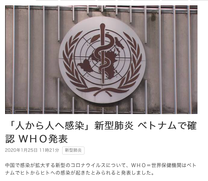 そして1月24日、WHOはベトナムで中国に行ってない人がコロナウイルスに感染したと発表されました。