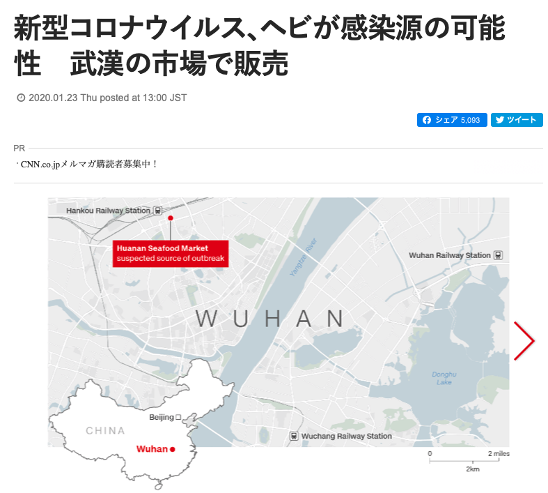実際に1月23日に、コロナウイルスの発生源は武漢市の市場に集められてた食用動物ではないかと推定されました。