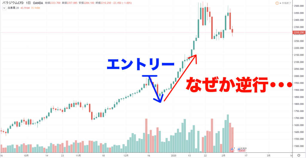 ※パラジウムにエントリーしてチャートが動いたときのお話は、こちらをご覧くださいませ。