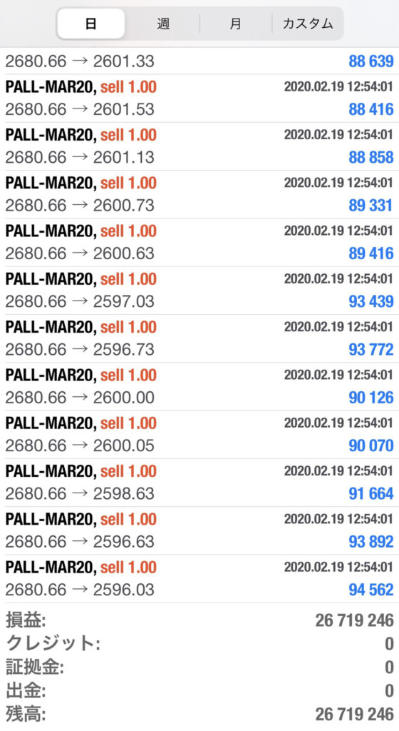 しかし、実はこの損失3000万円はパラジウムの利確3000万円でチャラにしてたんですよ。