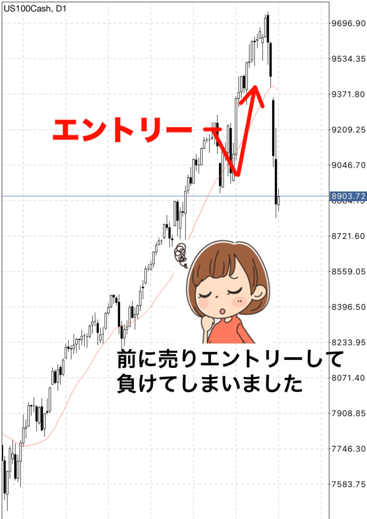 実は私、以前にアメリカ株ナスダックを売りで狙ってドカンとやられちゃったんです。