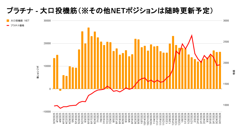 おぉ、プラチナも買いポジション解消されてきてますね。