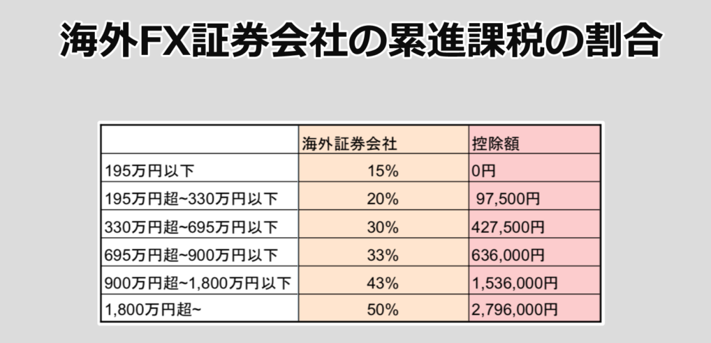実は海外証券会社も、利益が195万円以下であれば国内FX証券会社よりも税率を安くできます。