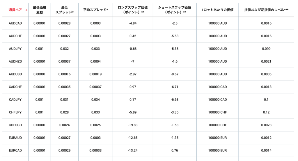 | 豪ドル(AUD) | ◯ | ◯ | ◯ | ◯ |