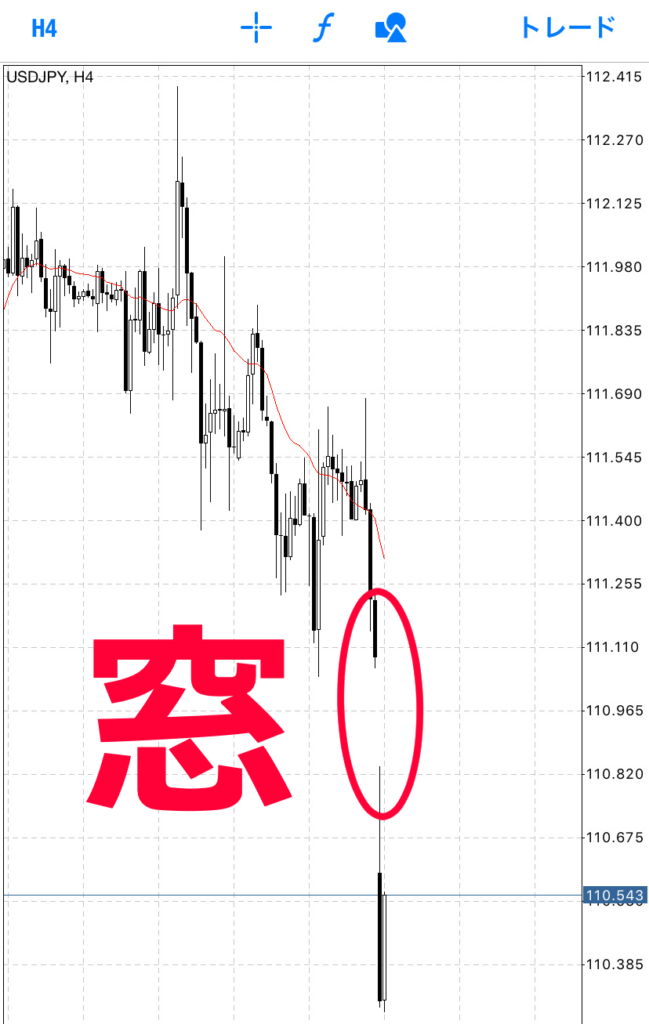 窓はチャートのロウソク足の間に空く隙間のことです。詳しくはこちらで説明しています。
