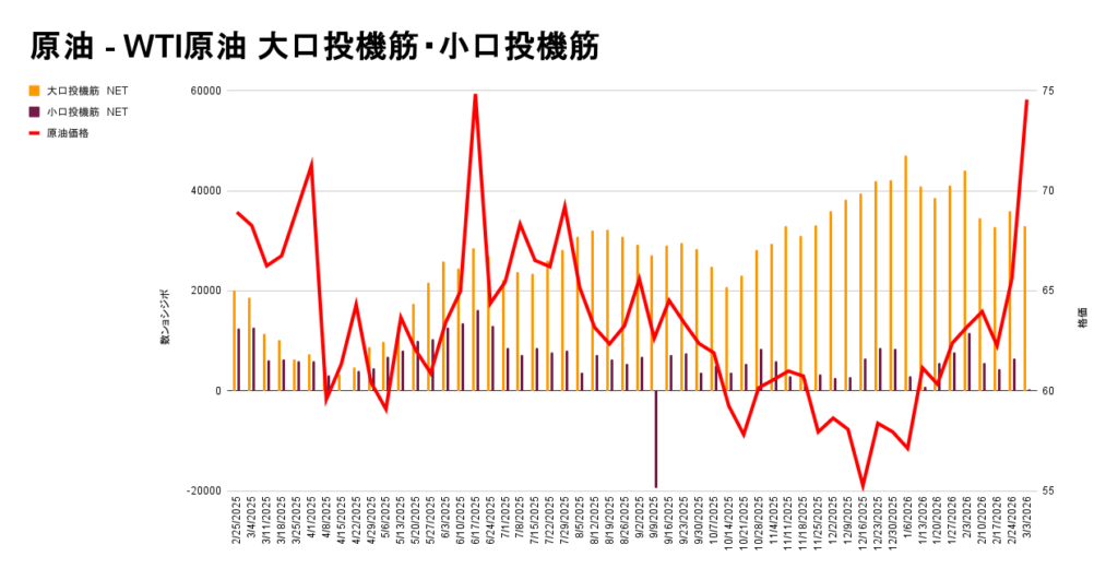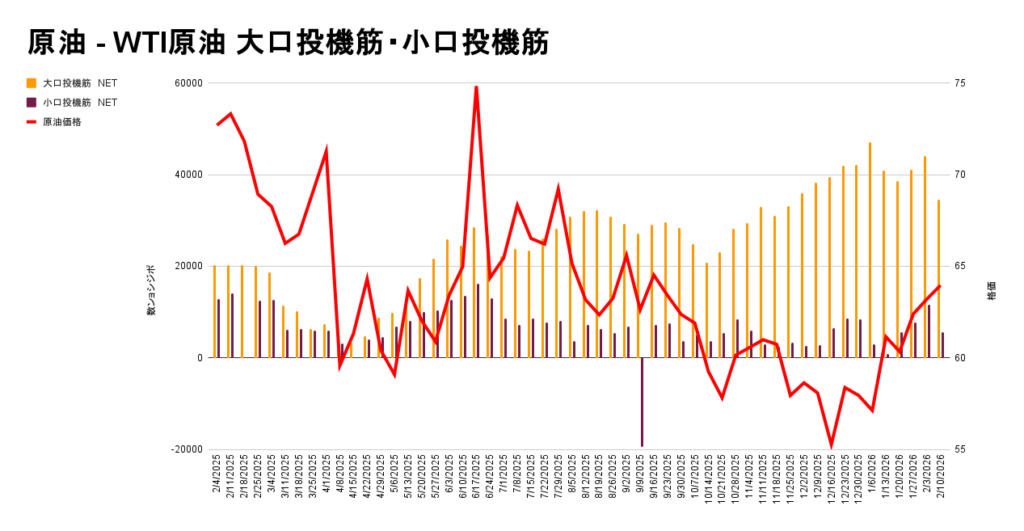 本題に入りますが、こちらが原油(オイル)の投機筋チャートになります。