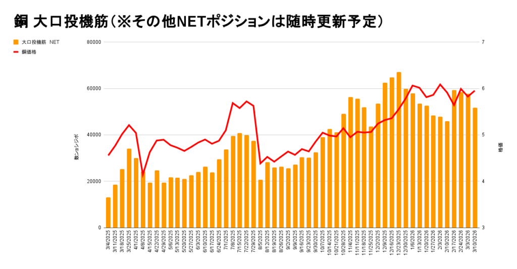 ただ、銅の投機筋チャートを見ると売りポジション数は減ってきているので、ここから銅が上昇して株が上昇する可能性は考えられます。