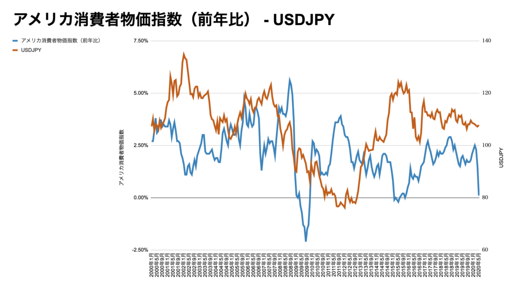 実は僕はアメリカの消費者物価指数(前年比)とドル円の連動性に注目してみました。