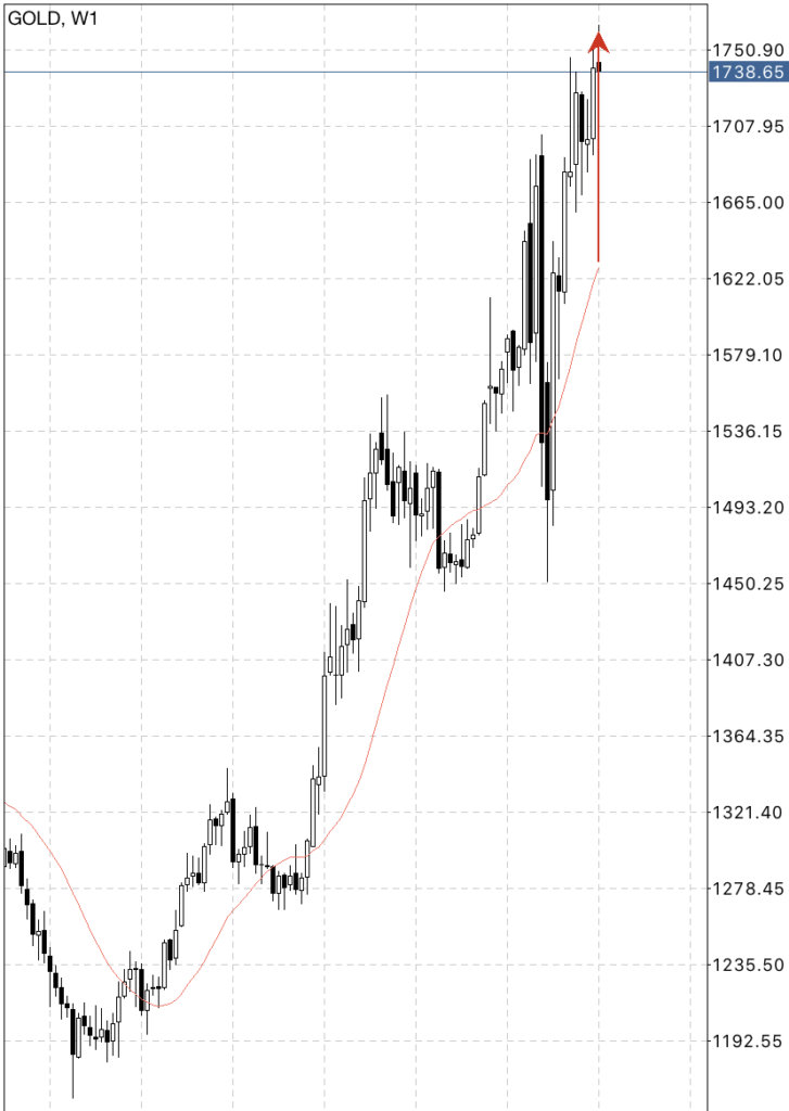 金は現在、週足でもかなり移動平均線から離れています。