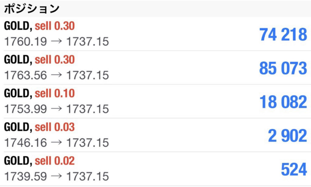 前にオーリーさん、金を1755で追加で空売りしてたじゃないですか!私も勇気づけられて大きなロットで空売りしてみました!