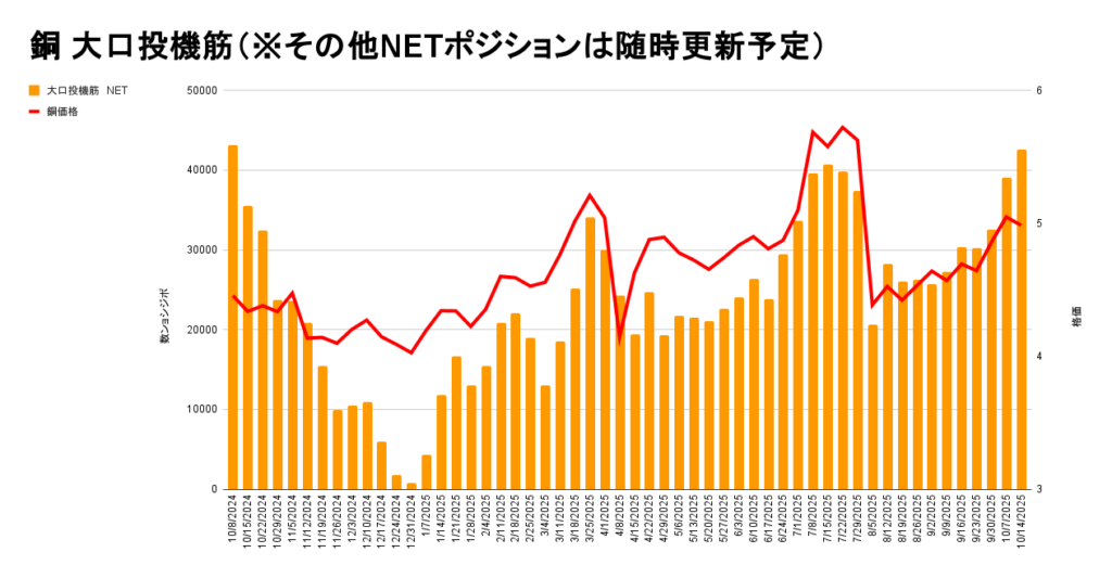 ここで、銅の投機筋のポジション量を見てみましょう。