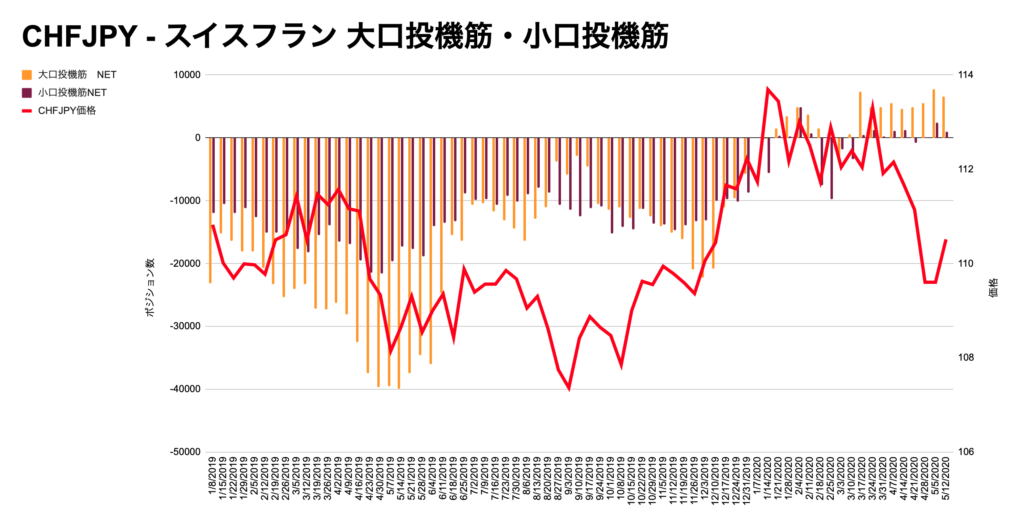 今回、投機筋チャートを見るとスイスフランにも動きが見えてきました。
