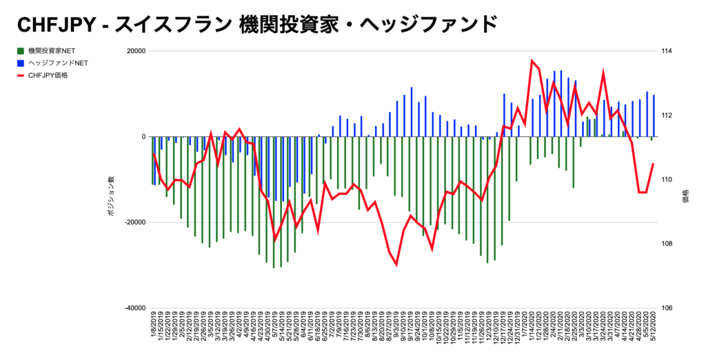 そこで早速、CHFJPYのチャートとスイスフランの投機筋チャートを見てみましょう。