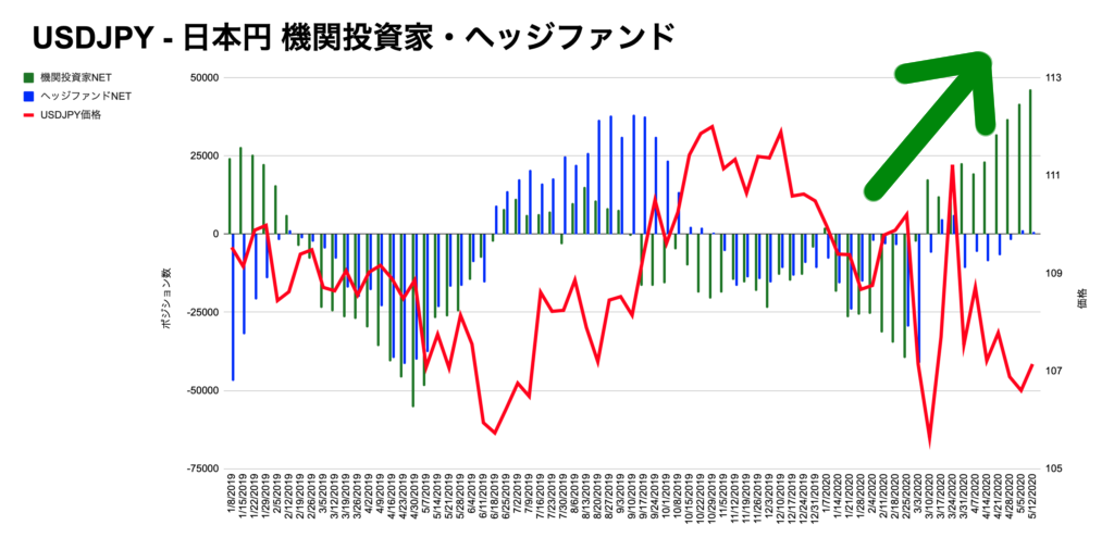 あれ?こっちは機関投資家が一気に買いポジション数を増やしていますね。
