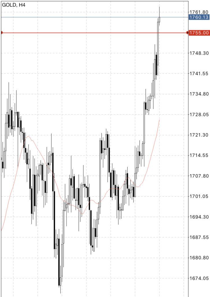 先日も金について話しておりましたが、ナンピン(※)予定の1755まで届きました。